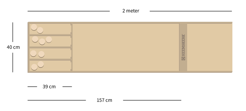| Sjoelbak HS-20 | 200 cm | 40 cm | 4 cm |