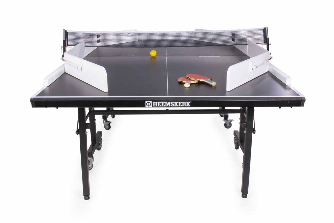 De 4 delen bevestig je eenvoudig op elke zijde van een tafelhelft en kunnen weer los gemaakt worden voor een spelletje tafeltennis.