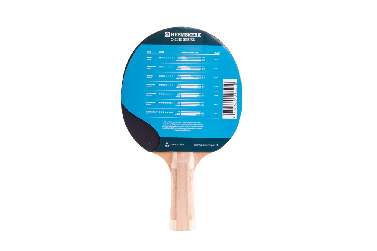 Tafeltennisbatje uit de Heemskerk C-serie. De Icebreaker is een 2 STER bat voor de beginner ter beheersing van het basisspel. Het bat bestaat uit 5 ply Wood met een concave/holronde grip, welke voorzien is van glad sandwichrubber (1.5mm). De Icebreaker tafeltennis bat is zeer geschikt voor het aanleren van controle bij een verdedigende speelstijl en tevens voor het oefenen van nieuwe technieken.