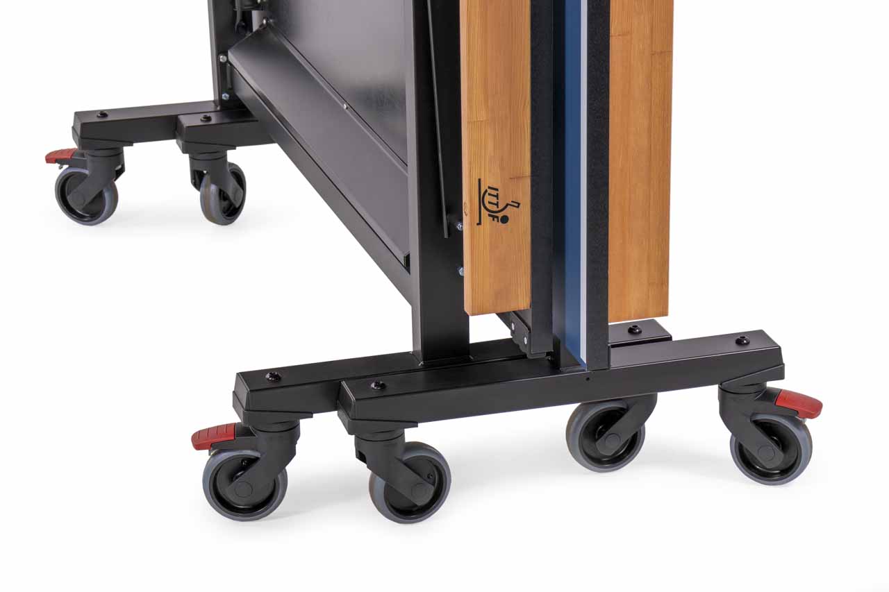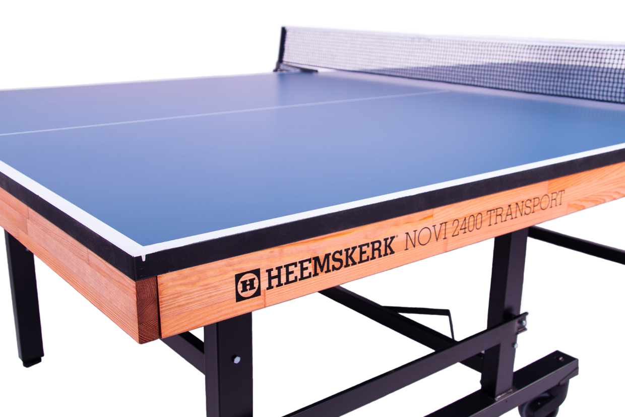 De kwaliteit van onze Heemskerk Novi 2400 tafeltennistafel is zo goed, dat zowel de Nederlandse Tafeltennisbond als de International Table Tennis Federation hem hebben goedgekeurd als officiële wedstrijdtafel. Deze tafel heeft dan ook een stevig, metalen onderstel met 8 zwenkwielen (waarvan 4 met rem) en stelvoeten om de tafel waterpas te zetten. Bovendien is deze tafeltennistafel geschikt voor rolstoelgebruik. Hierdoor kunnen tafeltennis wedstrijden op het hoogste niveau op de Novi 2400 gespeeld worden. En om extra te oefenen klap je één van de bladen snel en eenvoudig in om de tafel in zelftrainstand te zetten.