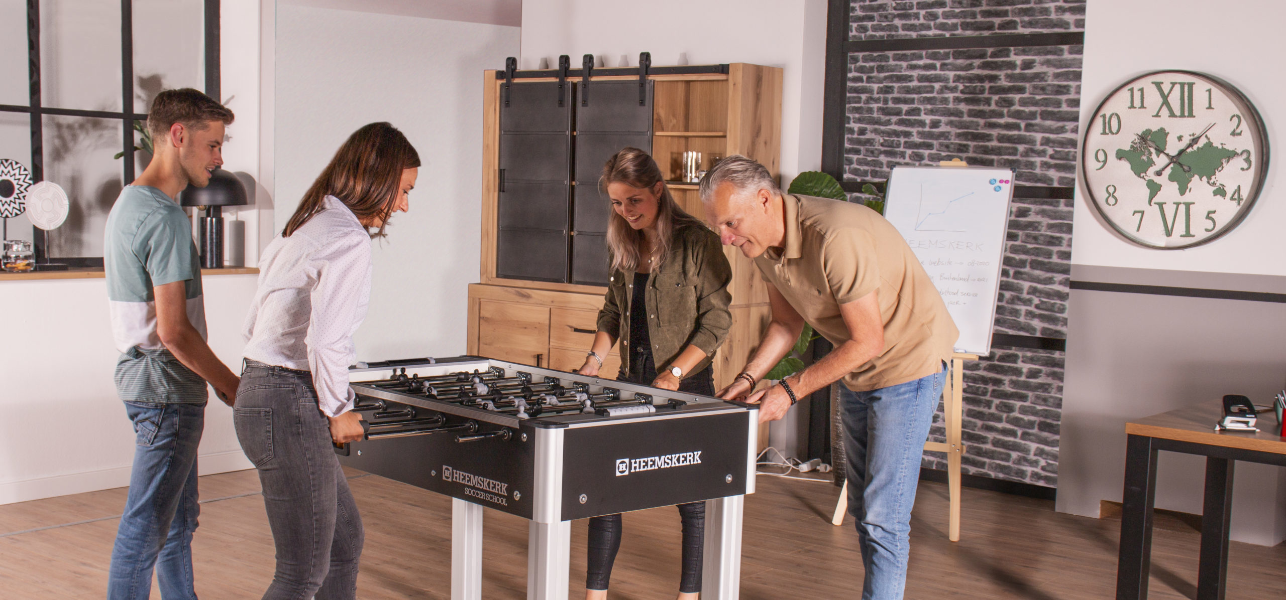 Je kent Heemskerk natuurlijk voornamelijk van de tafeltennis sport. Maar sinds jaar en dag zijn ook onze voetbaltafels niet meer weg te denken uit het assortiment.