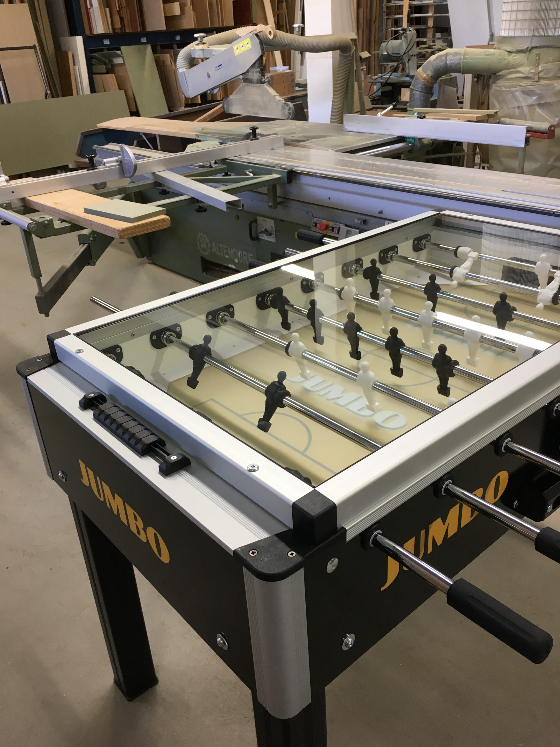 Voetbaltafel voorzien van 5mm geharde glasplaat