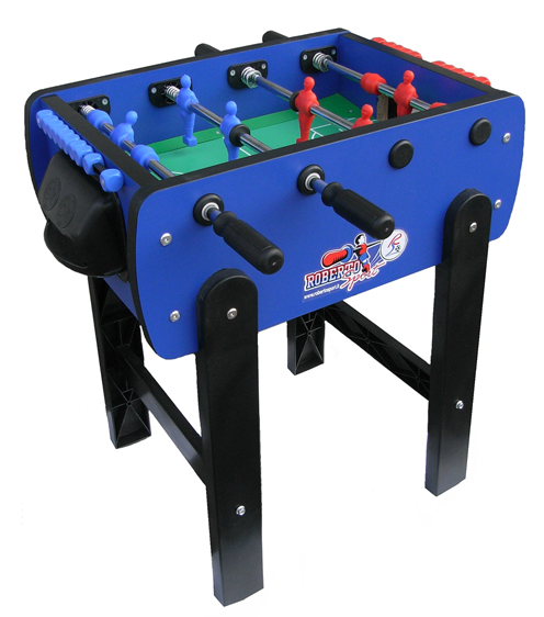 Voetbaltafel speciaal gemaakt voor kinderen. De voetbaltafel heeft een kleiner formaat: 66 x 75 x 72cm en uitgevoerd met maar 4 stangen. Uitermate geschikt voor kinderen van 3 tot 6 jaar qua hoogte en zeer veilig dankzij de telescopische stangen, maar toch stevig genoeg voor de hele familie. Na het scoren van een doelpunt komt het tafelvoetbalballetje in één van de zijkanten tevoorschijn. Deze voetbaltafel voldoet aan de Europese Speelgoed veiligheidseisen.